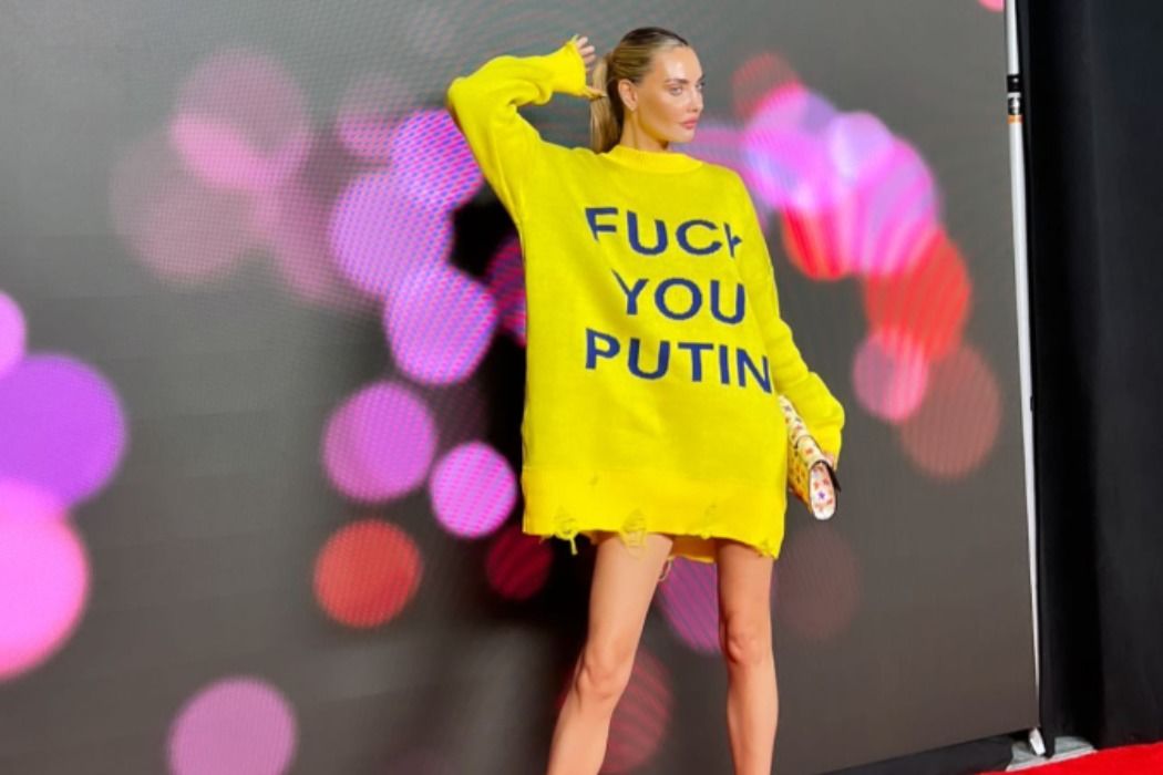 Украинская манекенщица Алина Байкова одной надписью на одежде показала, что думает о Владимире Путине.